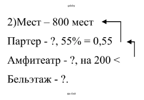 2) В театре 800 мест. Из них 55 % — места в партере, в амфитеатре на 200 мест меньше, чем в партере, а остальные — в бельэтаже. Сколько мест в бельэтаже?