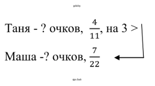 Маша, в свою очередь, набрала $\frac{7}{22}$ от всех очков, что составляет $\frac{7}{22}x$.