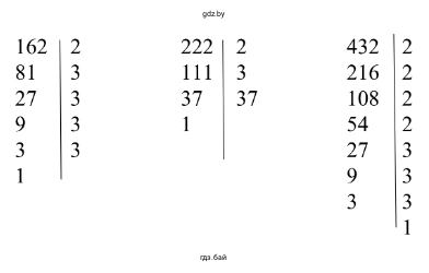 б) Для нахождения НОД чисел 162, 222 и 432 разложим их на простые множители.