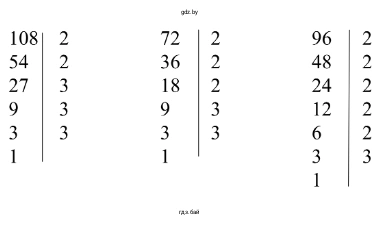 в) Для нахождения НОД чисел 108, 72 и 96 разложим их на простые множители.