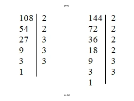 Для этого разложим числа 108 и 144 на простые множители: