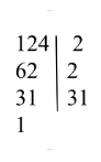 $124 = 2 \cdot 2 \cdot 31 = 2^2 \cdot 31$