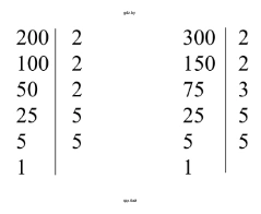 - Выписать все простые множители, которые входят хотя бы в одно из разложений.