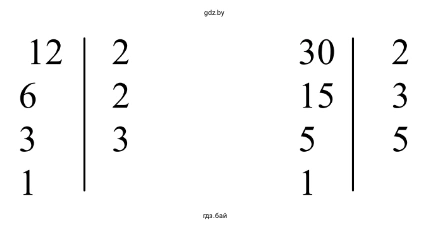 $НОК(12, 30) = 2^2 \cdot 3^1 \cdot 5^1 = 4 \cdot 3 \cdot 5 = 60$