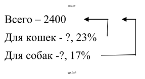 3. В зоомагазине представлено 2400 наименований товаров. Известно, что 23 % наименований — товары для кошек, 17 % наименований — товары для собак.
