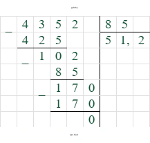 $43,52 : 0,85 = 4352 : 85 = 51,2$