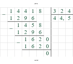 $144,18 : 3,24 = 14418 : 324 = 44,5$