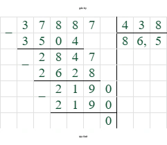 $378,87 : 4,38 = 37887 : 438 = 86,5$