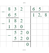 $83,2 : 6,5 = 832 : 65 = 12,8$