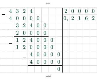 $\frac{4324}{200} = 21,62 \text{ см}$