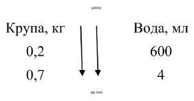 - Нам нужно найти, сколько воды потребуется для 0,7 кг гречневой крупы.