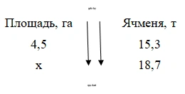 3.117. С первого поля площадью 4,5 га собрали 15,3 т ячменя. Какова площадь второго поля, если при одинаковой урожайности с него собрали 18,7 т ячменя?