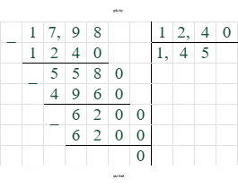 $\frac{12,4 \cdot 100}{1,45 \cdot 100} = \frac{1240}{145}$