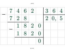 3. Теперь выражение выглядит так: $746,2 : 36,4 - 204,12 : 19,44$. Выполним первое деление:
