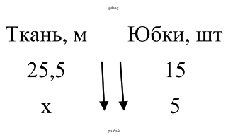 Также можно было заметить, что количество юбок уменьшилось в $15 \div 5 = 3$ раза, следовательно, и ткани потребуется в 3 раза меньше: $25,5 \div 3 = 8,5$ м.