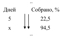 3.73. За 5 дней было собрано 22,5 % всей пшеницы. Сколько дней потребуется, чтобы собрать 94,5 % всей пшеницы?