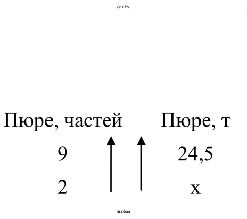$\frac{9 \text{ частей пюре}}{2 \text{ части отходов}} = \frac{24,5 \text{ т пюре}}{x \text{ т отходов}}$