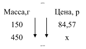 3.75. На ценнике указана стоимость 150 г сыра — 84,57 р. Чему равна стоимость 450 г этого же сыра?