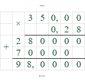 $350 \times \frac{28}{100} = 350 \times 0.28 = 98$