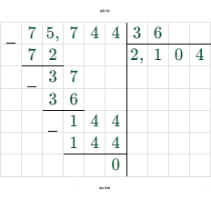 $7,5744 : 3,6 = 75,744 : 36$