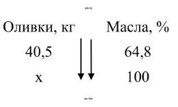 Таким образом, чтобы получить 40,5 кг масла, необходимо взять 62,5 кг оливок.