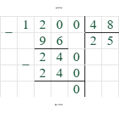 $y = \frac{240}{9,6} = \frac{2400}{96} = 25$.