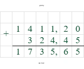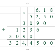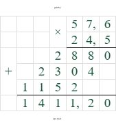 3. Теперь выражение приняло вид: $57,6 \cdot 24,5 + 6,18 \cdot 52,5$. Выполним умножения слева направо. Первое умножение: