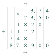 3. Теперь выражение выглядит так: $3,74 \cdot 23,5 + 7,32 \cdot 3,85$. Выполним первое умножение: