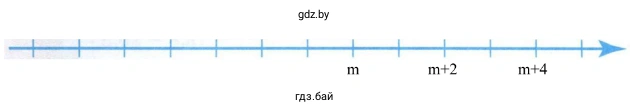 Чтобы найти точку с координатой $m+4$, необходимо от точки $m$ отложить 4 единичных отрезка вправо. Это на 2 деления правее точки $m+2$.