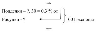 Пусть х – рисунков, тогда 0,3х – поделок. Зная, что всего было 1001 экспонат, составим и решим уравнение: