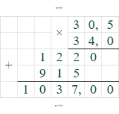 Умножим модули чисел: $30,5 \cdot 34$.