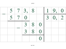 Следовательно, $-57,38 : (-1,9) = 30,2$.