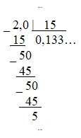 1. Переведем обыкновенную дробь в десятичную. Для этого разделим числитель 2 на знаменатель 15.