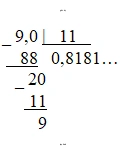 $9 \div 11 = 0,818181...$