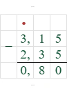 2. Теперь вычитание в скобках: $3,15 - 2,35 = 0,8$.