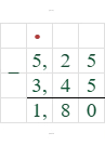 2. Теперь вычитание в скобках: $5,25 - 3,45 = 1,8$.