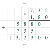 3. Далее выполняем умножение: $1,8 \cdot 7,35 = 13,23$.