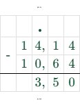 2. $ x = 14,14 - 10,64 = 3,5 $