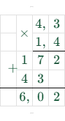1. $ 4,3 \cdot 1,4 = 6,02 $