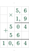 1. $ 1,9 \cdot 5,6 = 10,64 $