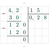 $ \frac{4,2 \cdot 10}{15 \cdot 10} = \frac{42}{150} $