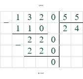 $x = \frac{132}{5.5} = \frac{1320}{55} = 24$