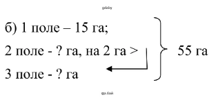 б) Площадь первого поля 15 га, второго на 2 га больше, чем третьего. Чему равна площадь второго поля, если общая площадь трёх полей 55 га?