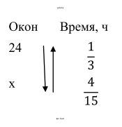 $П_2 = \frac{1 \text{ окно}}{t_2} = \frac{1}{4/15 \text{ часа}} = \frac{15}{4}$ окна в час.