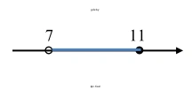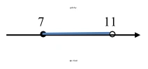 3. Условие $7 < x \le 11$ означает, что $x$ строго больше 7, но меньше или равен 11. На координатной прямой точка 7 изображается выколотой, а точка 11 — закрашенной. Этот вид промежутка называется полуинтервалом и обозначается так: $(7; 11]$.