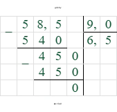 $-5,85 : 0,9 = -58,5 : 9 = -6,5$