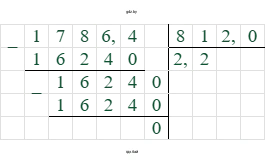 1) Выполним деление в скобках: $178,64 : 81,2$. Для удобства можно умножить делимое и делитель на 10, чтобы делитель стал целым числом: $1786,4 : 812 = 2,2$.