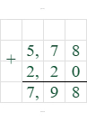 2) Выполним сложение в скобках: $5,78 + 2,2 = 7,98$.