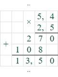 2) Умножение: $2,5 \cdot (-5,4)$. Произведение чисел с разными знаками отрицательно. $2,5 \cdot 5,4 = 13,5$. Следовательно, $2,5 \cdot (-5,4) = -13,5$.