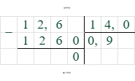 $-12,6 : 14 = -0,9$.